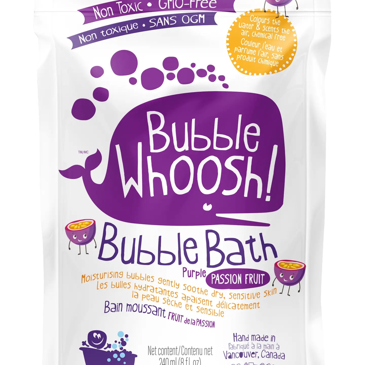 Purple coloured and passion fruit scented moisturizing bubble bath powder. Bubble Whoosh is formulated for sensitive skin and does not contain any parabens, chemicals, SLS or other known skin irritants... and its super fun too! Presented in recyclable, resealable Stand Up Pouch. Weight: 185g / 6.5oz. Measurements: 8 x 5 x 3.