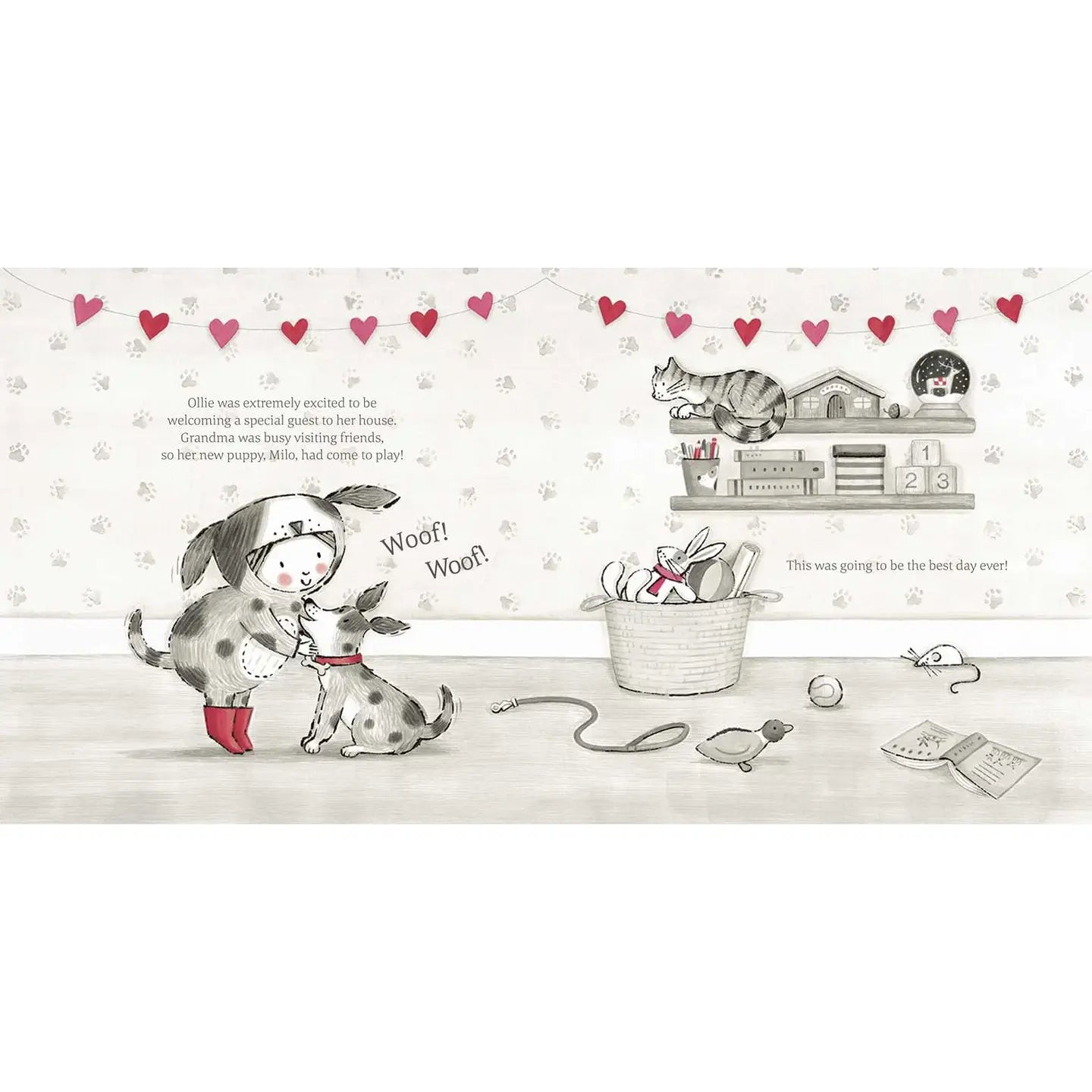 From beloved author-illustrator Nicola Killen comes an adorable story about Valentine’s Day and puppy love, tenderly told and illustrated in limited color with lovely red foil and interactive die cut pages. When Grandma comes for a special Valentine’s visit with her puppy, Milo, Ollie spends a special day playing with her new friend.
