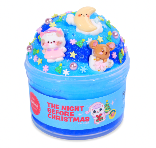 7 oz. Icee Slime with a sizzly, frosty texture and milk & cookies scent. Comes complete with whimsical Christmas character charms, mix-ins and sprinkles.