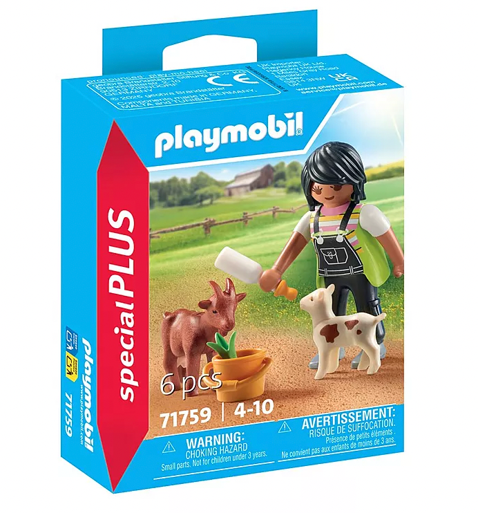 Assist in bottle feeding the hungry goats with Woman with Goats! Play with this set on its own or combine it with any other PLAYMOBIL set. Set includes one figure, goats, and other accessories. Recommended for ages four to ten years.